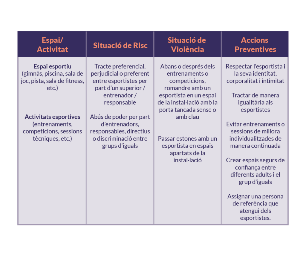 Prevenció en relació amb l’espai i les situacions de risc de discriminació, abús, assetjament o violència: