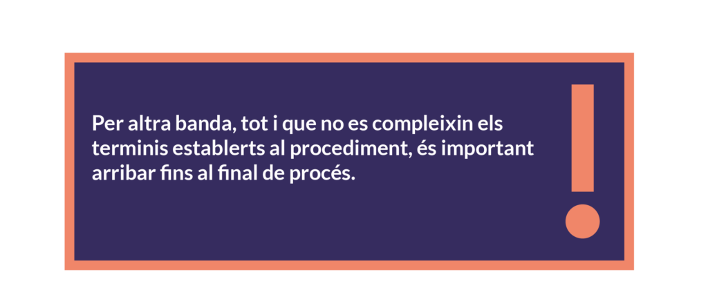 - Avisar la persona assetjada que té dret a recórrer per vies externes si els resultats de la instrucció no li són satisfactoris.