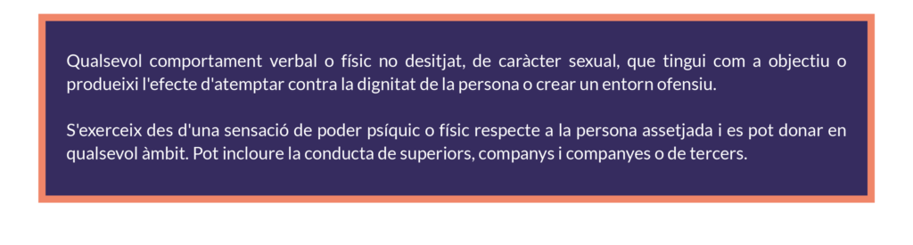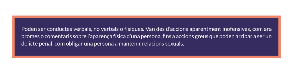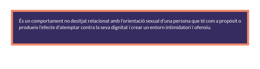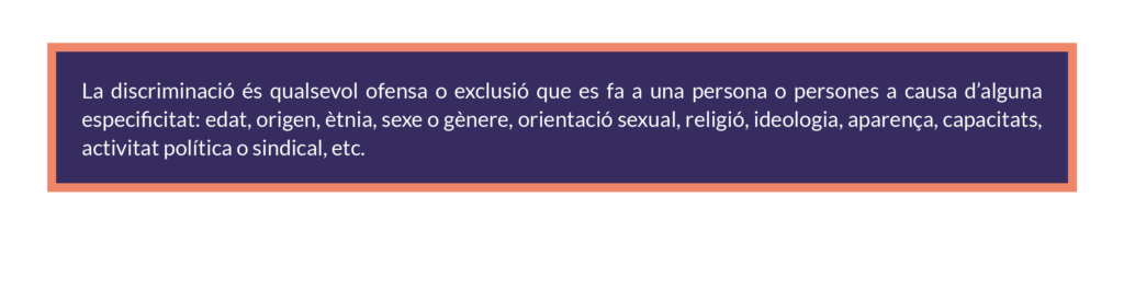 Es prohibeixen les actituds ofensives per raó de gènere, orientació sexual, raça, discapacitat, etc., siguin directes o indirectes.