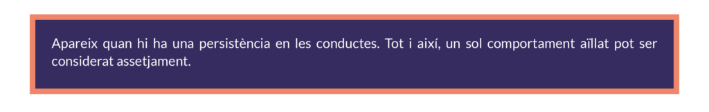 L’assetjament psicològic o moral compleix les condicions següents:
