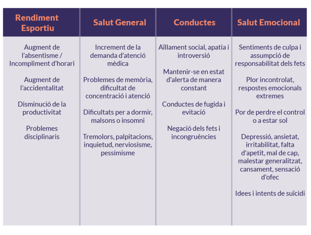 L’entitat activarà els mecanismes de detecció en cas que apareguin, entre els esportistes o el personal adscrit al club, alguna d’aquestes conductes de manera reiterada: